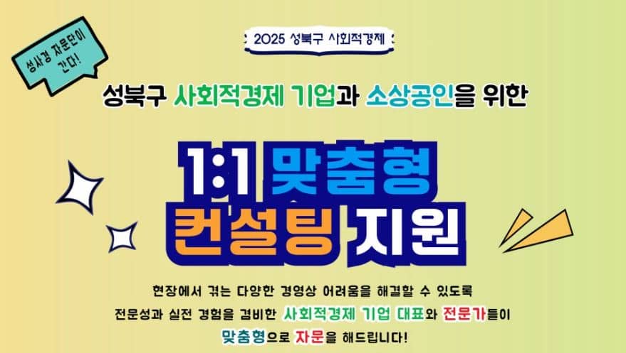 성북구 사회적경제 기업과 소상공인을 위한 1:1 맞춤형 컨설팅 지원, 성사경 자문단의 개별 컨설팅 신청 방법을 확인해 보세요. 다양한 분야의 전문가들이 참여하여 기업의 성장을 지원합니다.